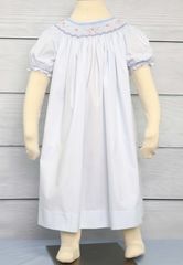 Spring dress in blue seersucker peasant dress and comes plain (no monogram or anchor) or with monogram (anchor with monogram).
