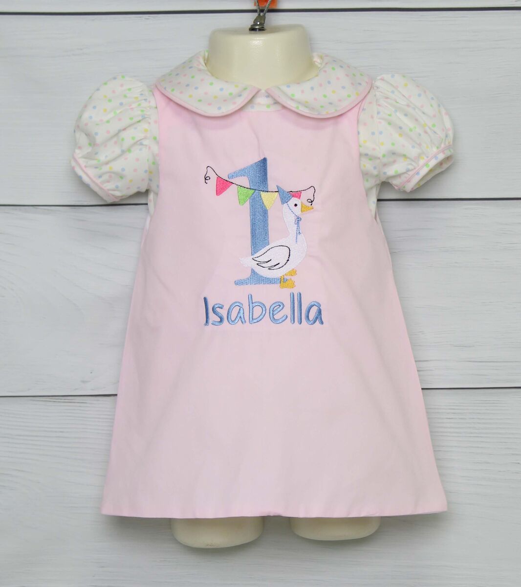 Celebrate your baby girl's first birthday with a charming pink jumper inspired by classic Mother Goose nursery rhymes. This sweet dress is perfect for a Mother Goose birthday party or a One Silly Goose theme, making it a standout choice for first birthday outfits for girls. Available with or without a whimsical goose applique and optional monogram, it’s designed for comfort, style, and unforgettable memories. Whether you're dressing your one-year-old for photos or the big party, this first birthday outfit blends storybook magic with timeless style.