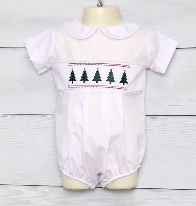 He will look amazing in a baby boy Christmas outfit by Zuli Kids. Boys Christmas outfit is a white baby boy bubble with embroidered Christmas tree design. Matching sibling outfits and sister dress available in separate listing.