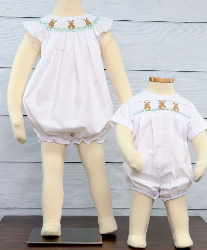 An Easter occasion will be made special and beautiful with baby boy smocked baby bubble. Baby boy Easter Outfits are very sweet in white smocked bunnies and is appropriate for boys Easter outfit. Easter Clothes are a lot of fun to dress your baby boys in.